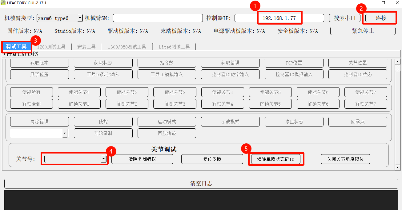 运行xarm-tool-gui,输入控制器IP,点击连接